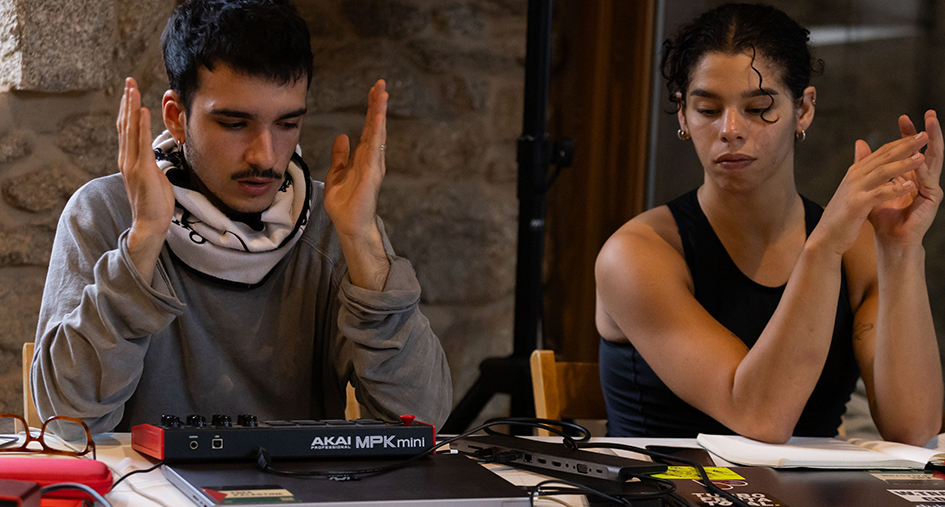 A través d’una mascarada constant, el cos s’adapta a escenaris imaginaris que evoquen experiències quotidianes del cos femení, evidenciant els mecanismes d'auto objectivació que operen sovint de manera inconscient. La residència consolida aquesta primera fase de creació, establint un marc escènic coherent on cos, so i imatge dialoguen en una estructura rítmica i compositiva clara, en col·laboració amb el músic i dissenyador de visuals Samuel Ramis.
